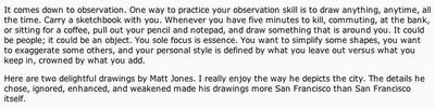 Walking home through the Mission District after work I made a habit of stopping to draw anything that caught my eye, from old Victorian style houses to the roadworks on Cesar Chavez.